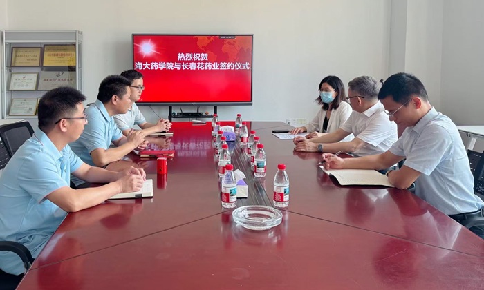 詳情>2025年5月7日上午,海南長春花藥業(yè)有限公司總經(jīng)理王小力和海南大學藥學院羅院長在長春花藥業(yè)會議室正...